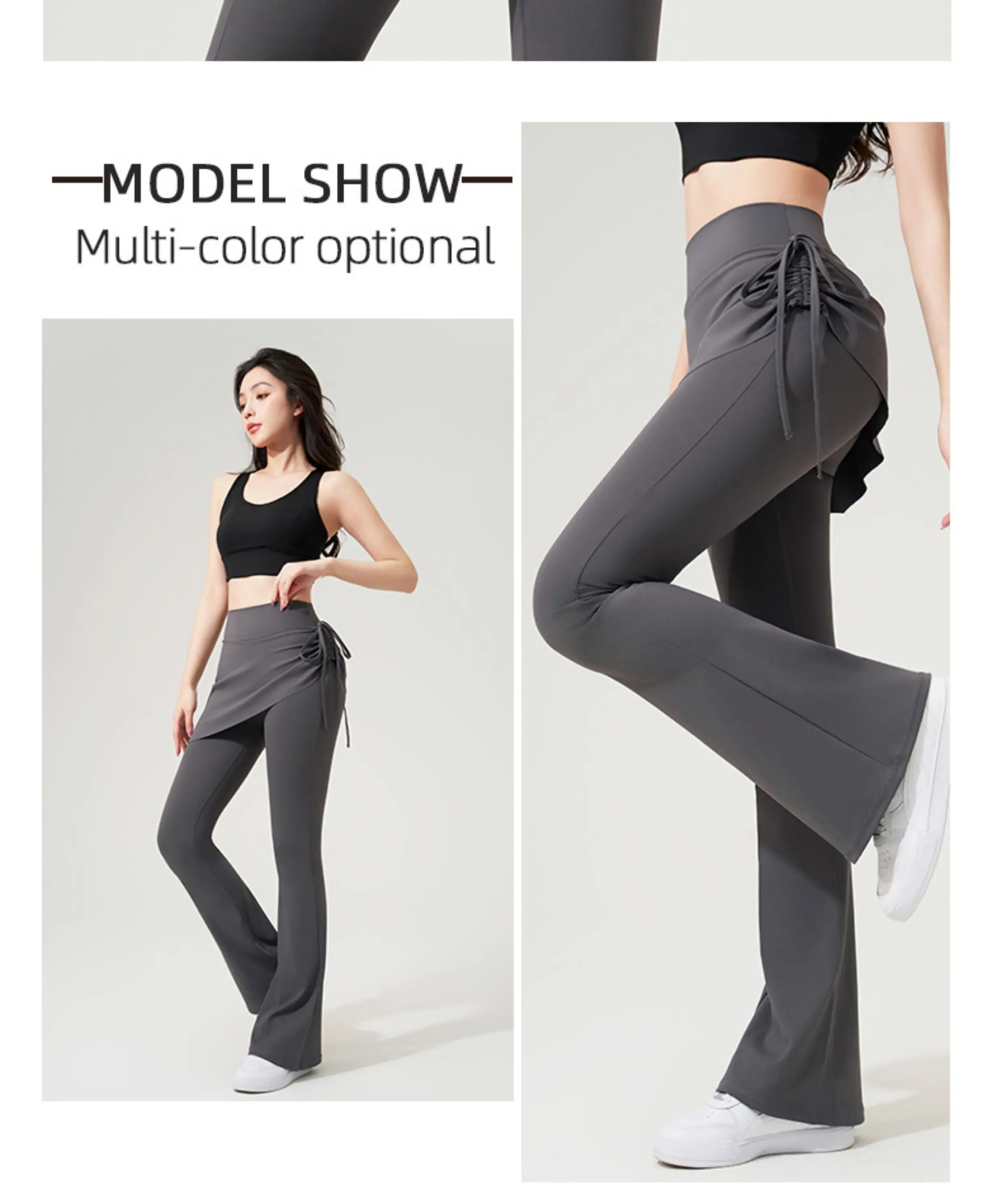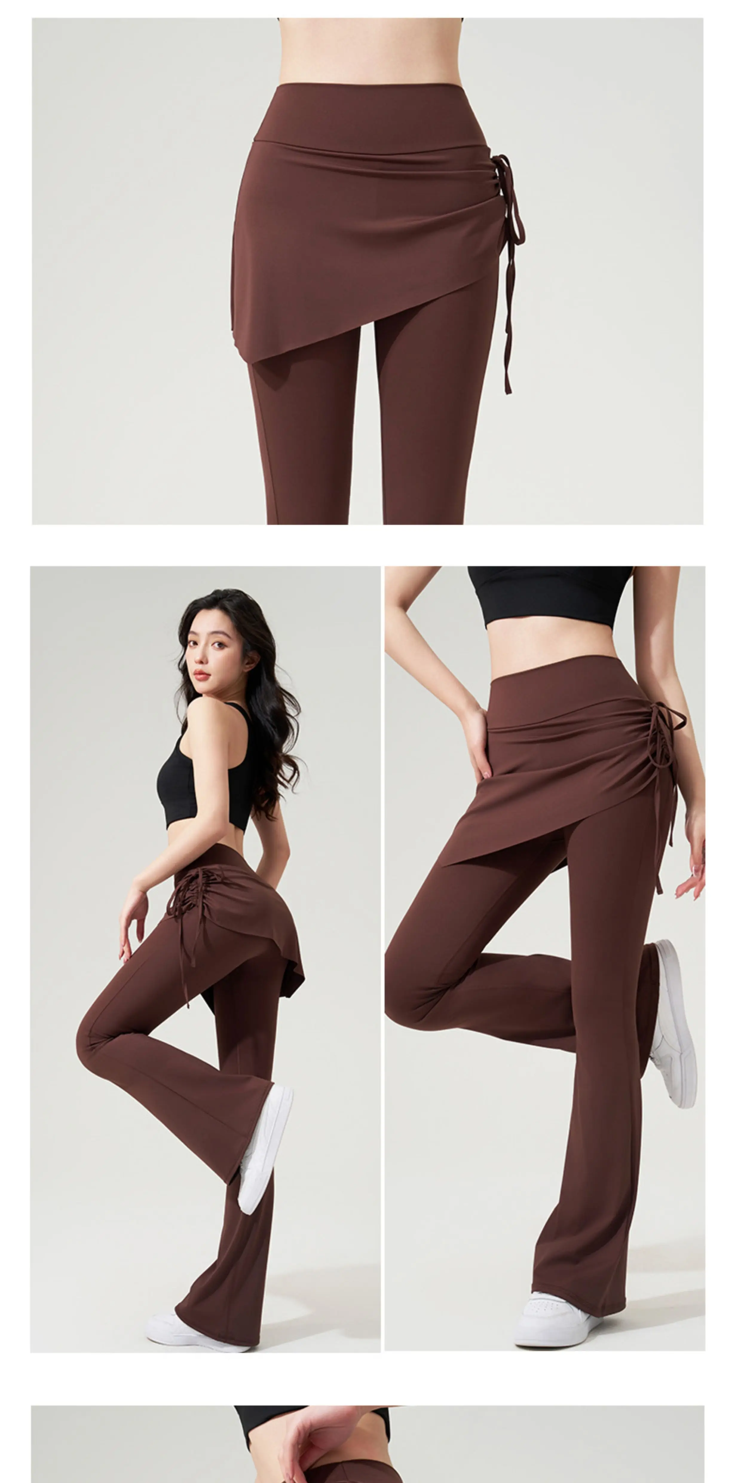 - > Yoga bell-bottom calças falsas saia de duas peças calças de cintura alta hip elevador corpo apertado anti-exposição pilates esportes leggings de fitness