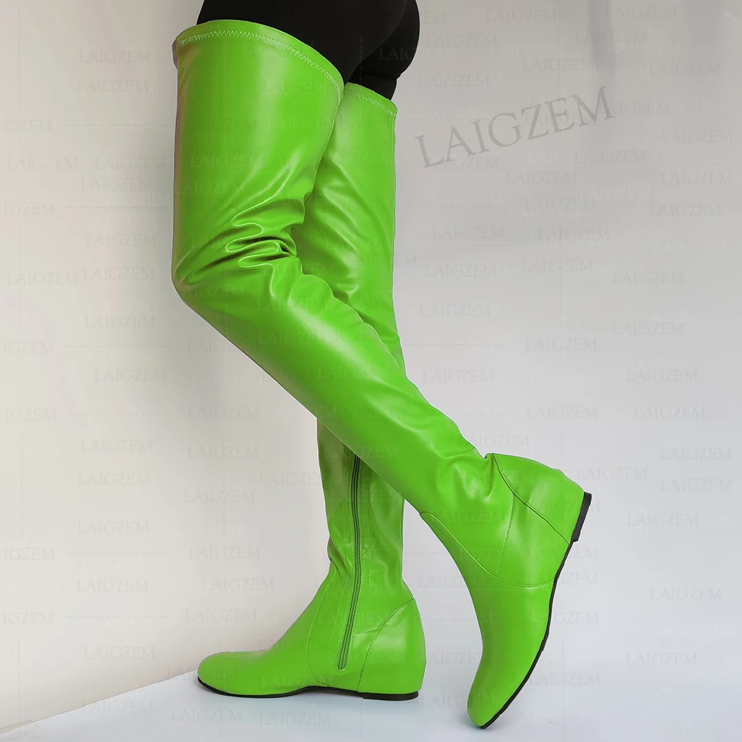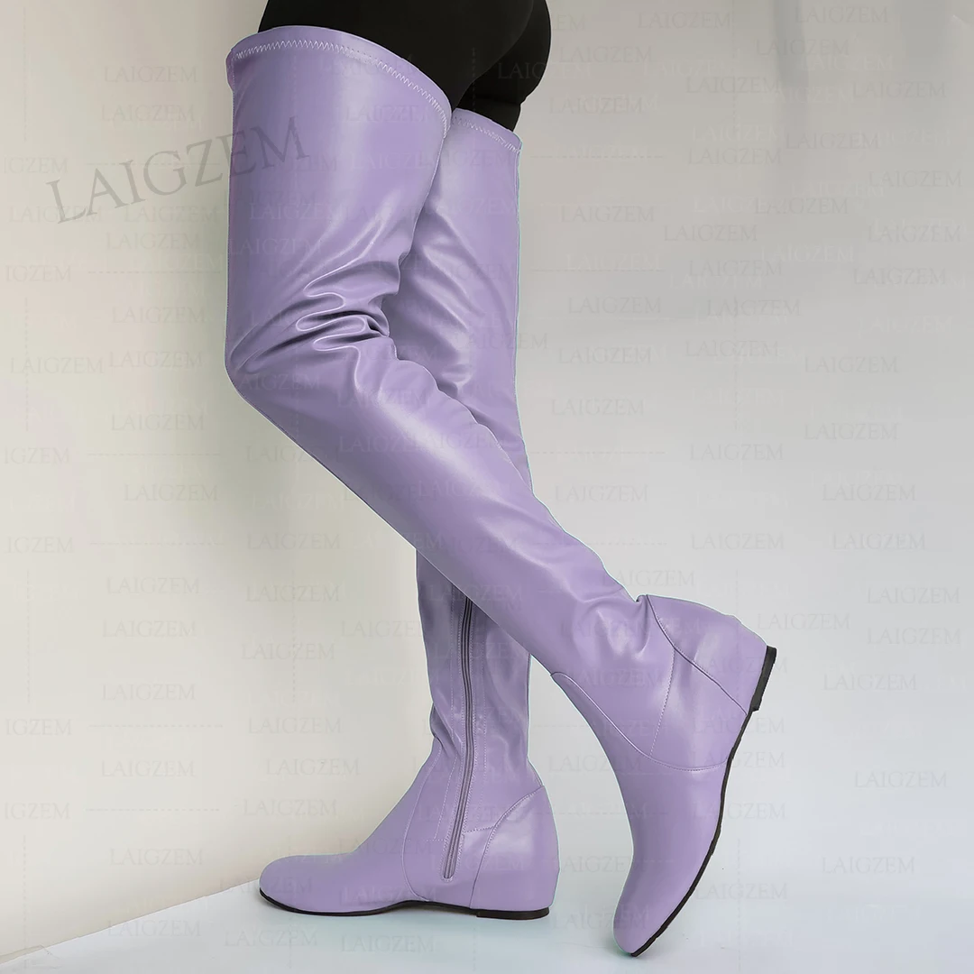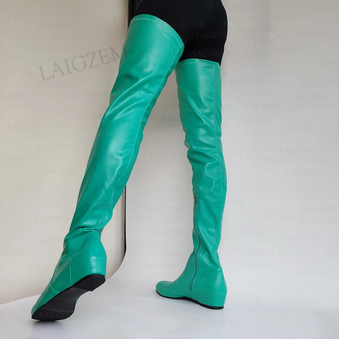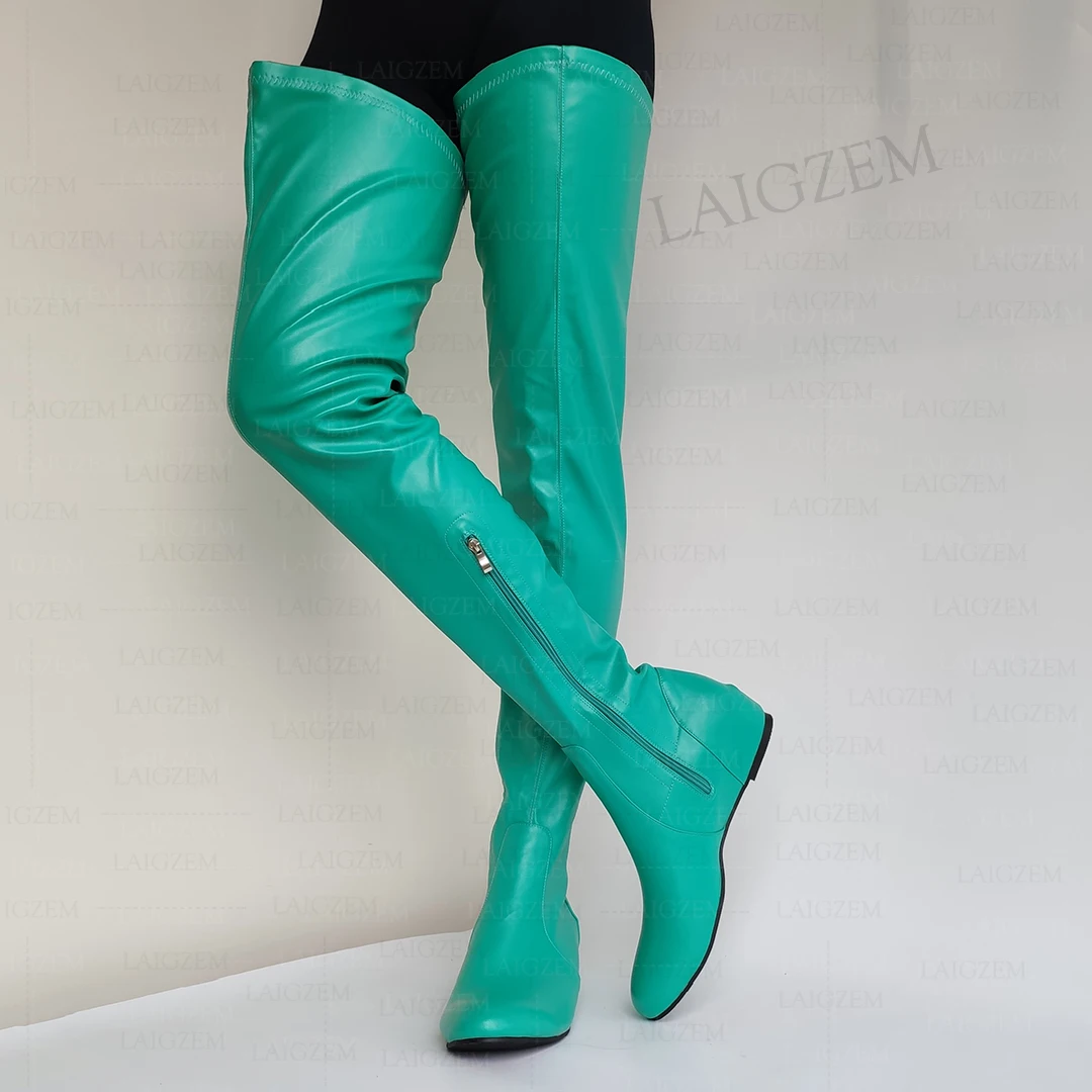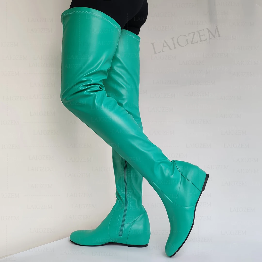 - > Zhima mulheres coxa botas altas de couro falso dedo do pé redondo zíper lateral meados de salto escondido botas senhoras sapatos mulher tamanho grande 37 42 44 50 52