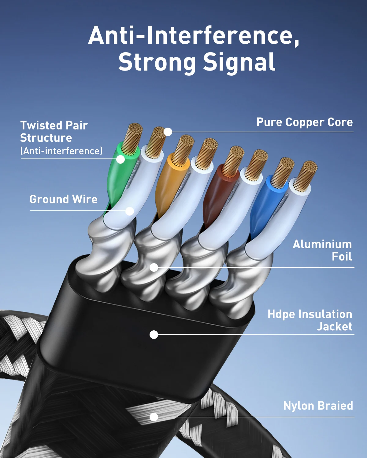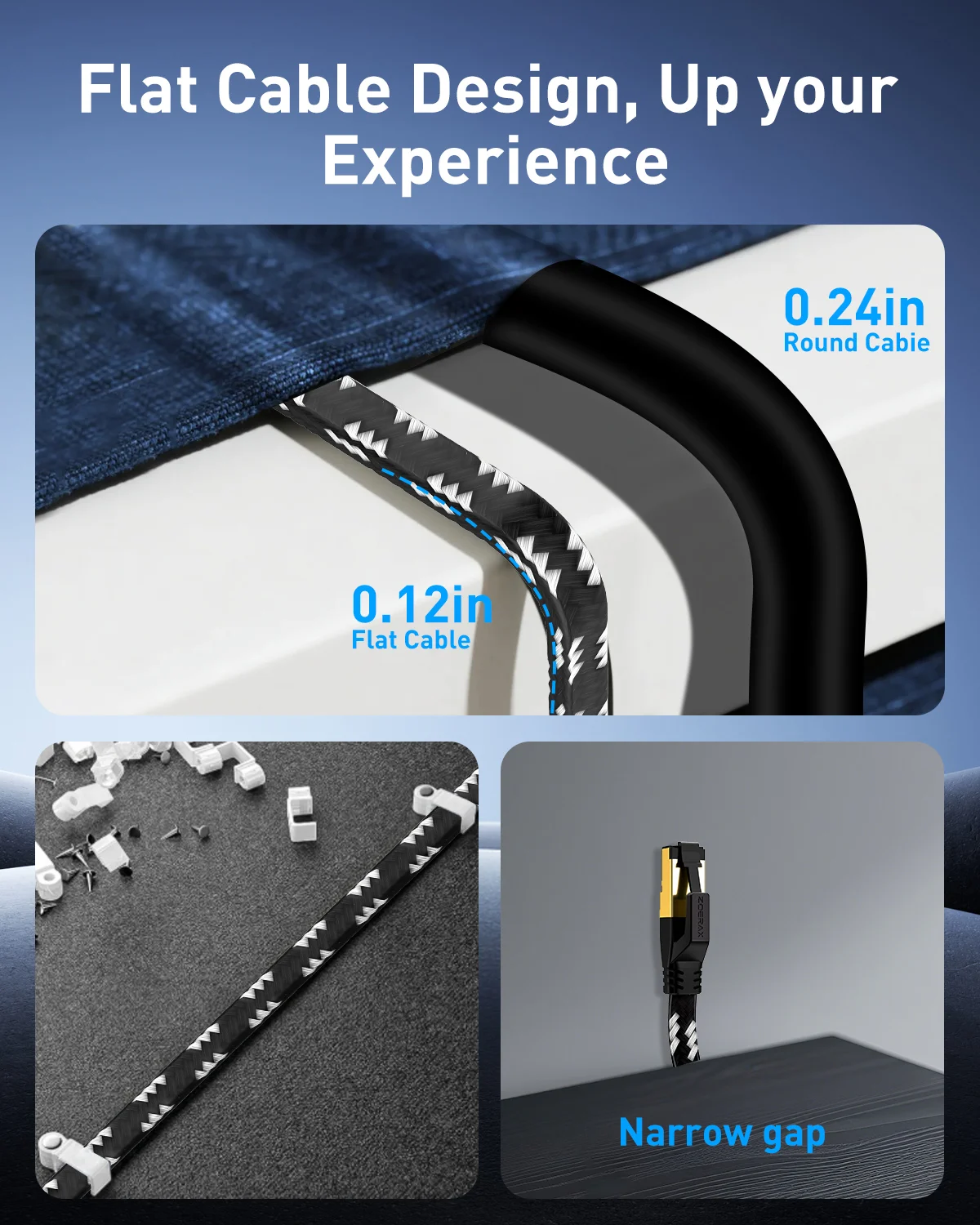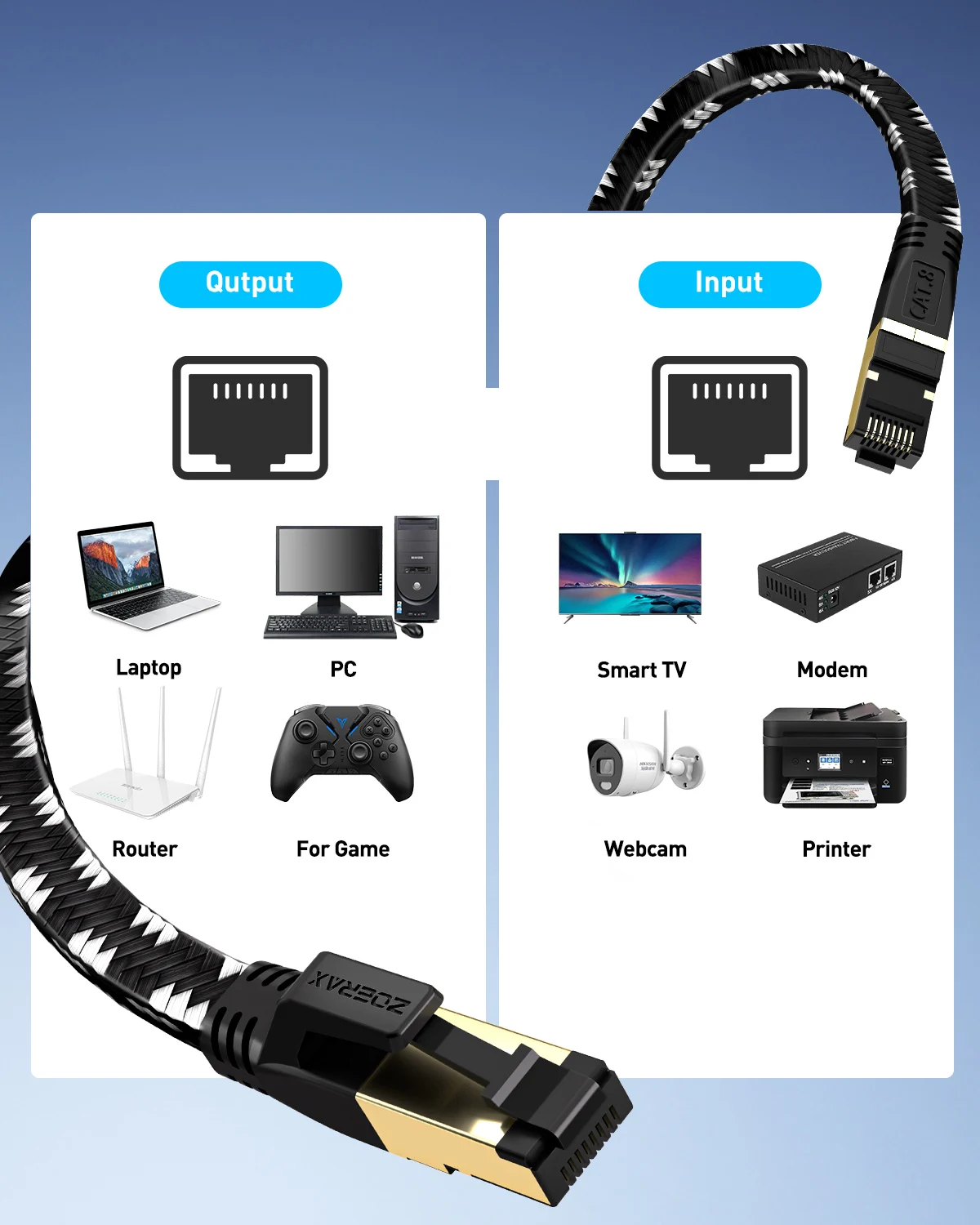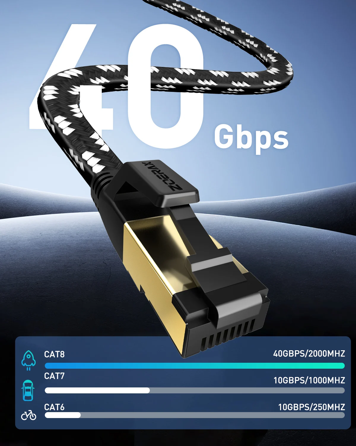 ZoeRax Cat8 Cabo Ethernet 40 Gbps 2000 MHz Cat 8 RJ45 Rede Lan Patch Cord para Roteador Modem Internet RJ45 Cabo Ethernet